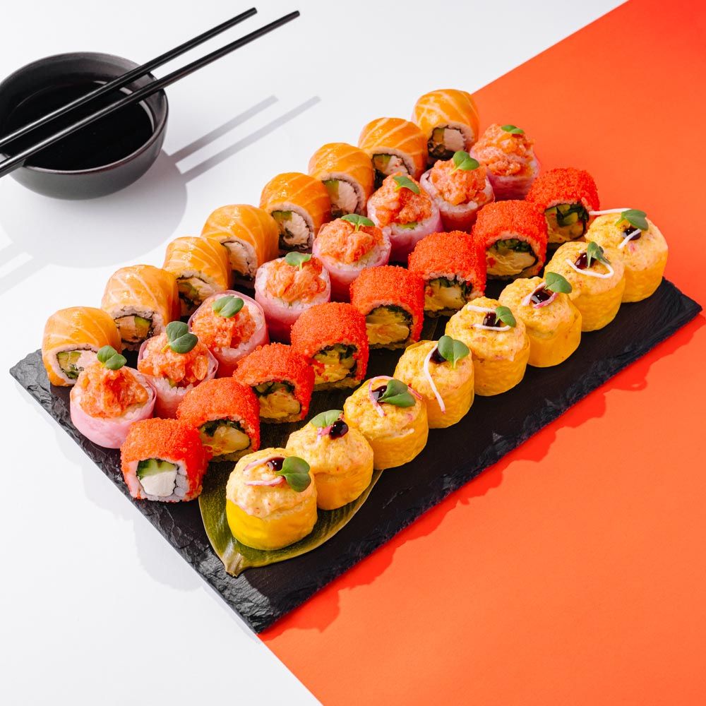 Сет из 4 роллов: Philadelphia Shi, Shiro Tartar Roll , California Ebi и Kiiro Roll